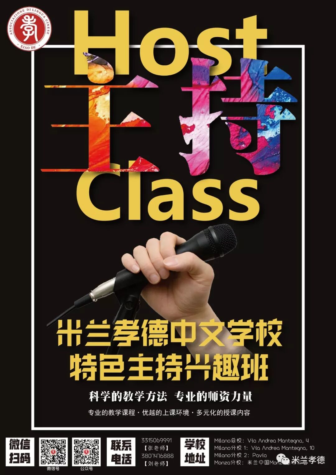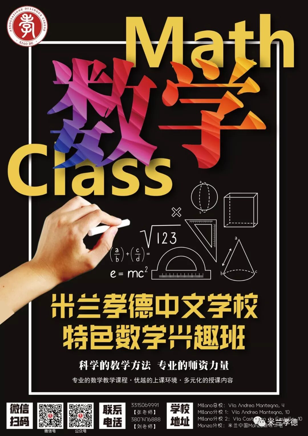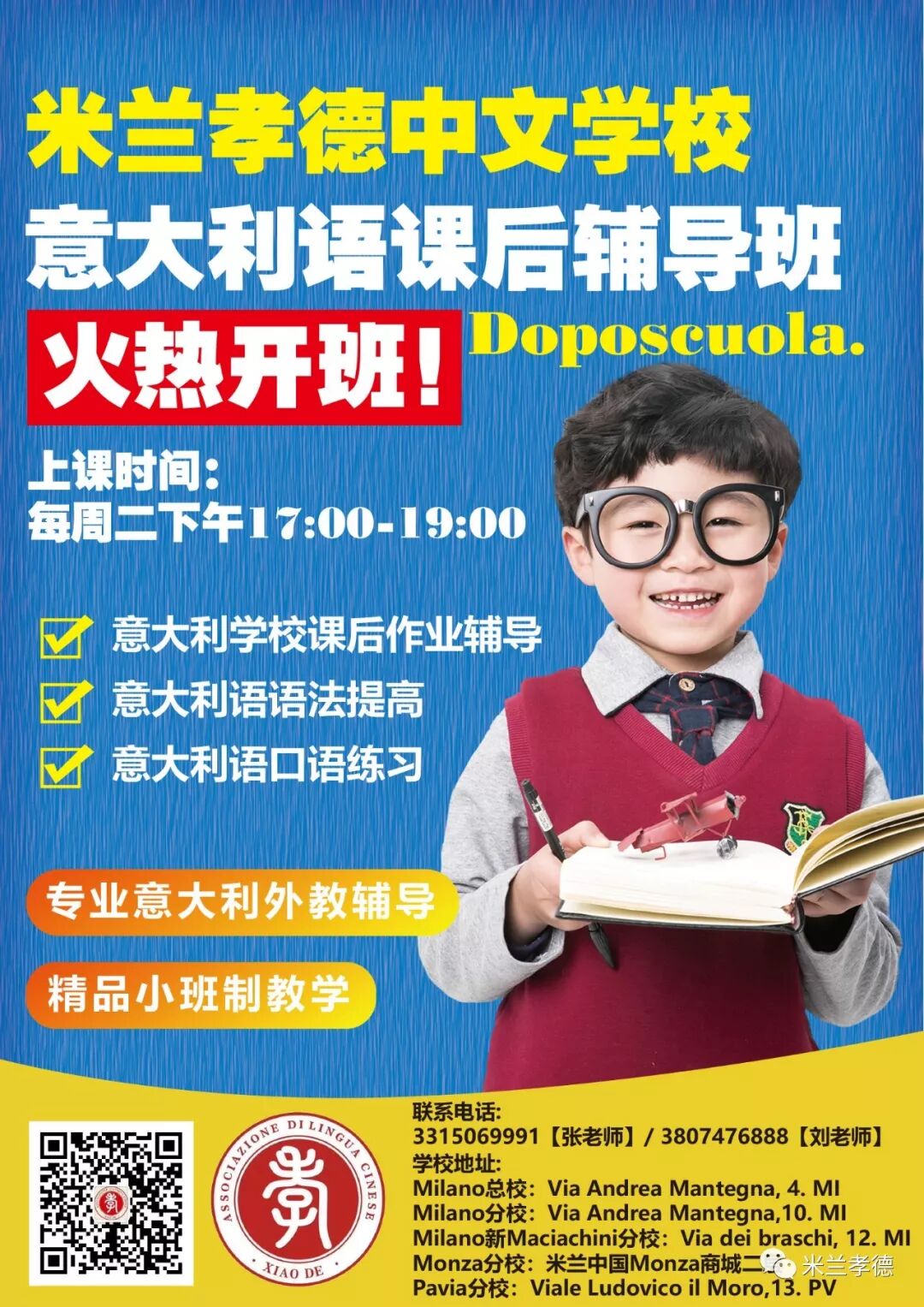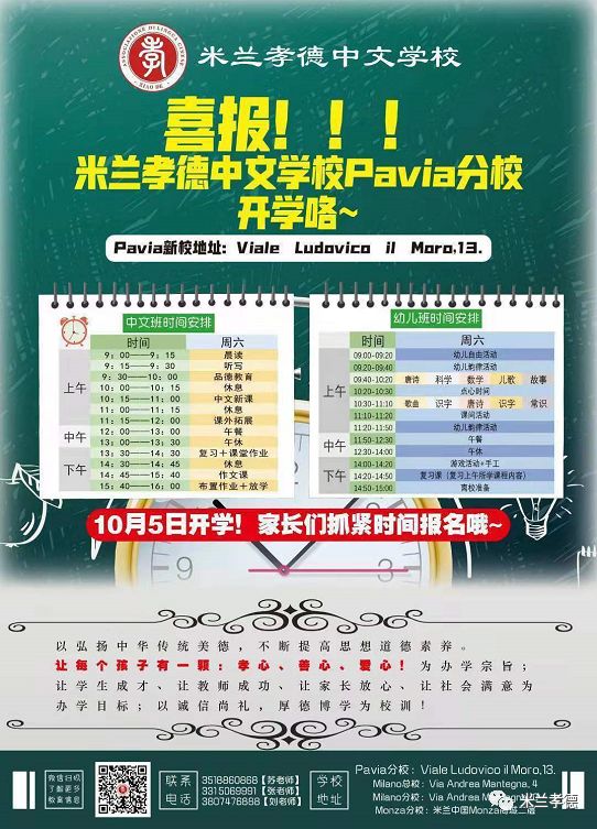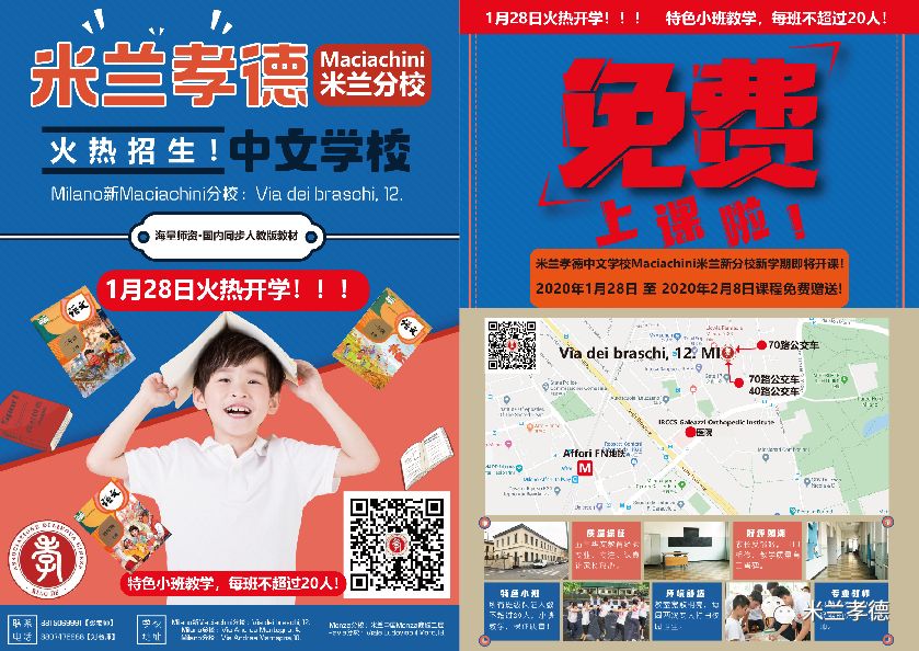 ①米兰孝德中文学校新Maciachini分校将于2020年1月28日正式开学!