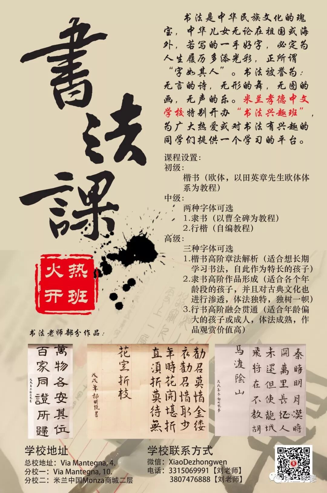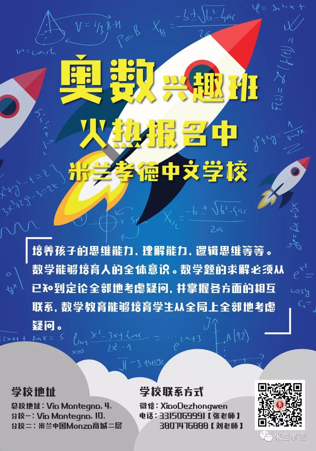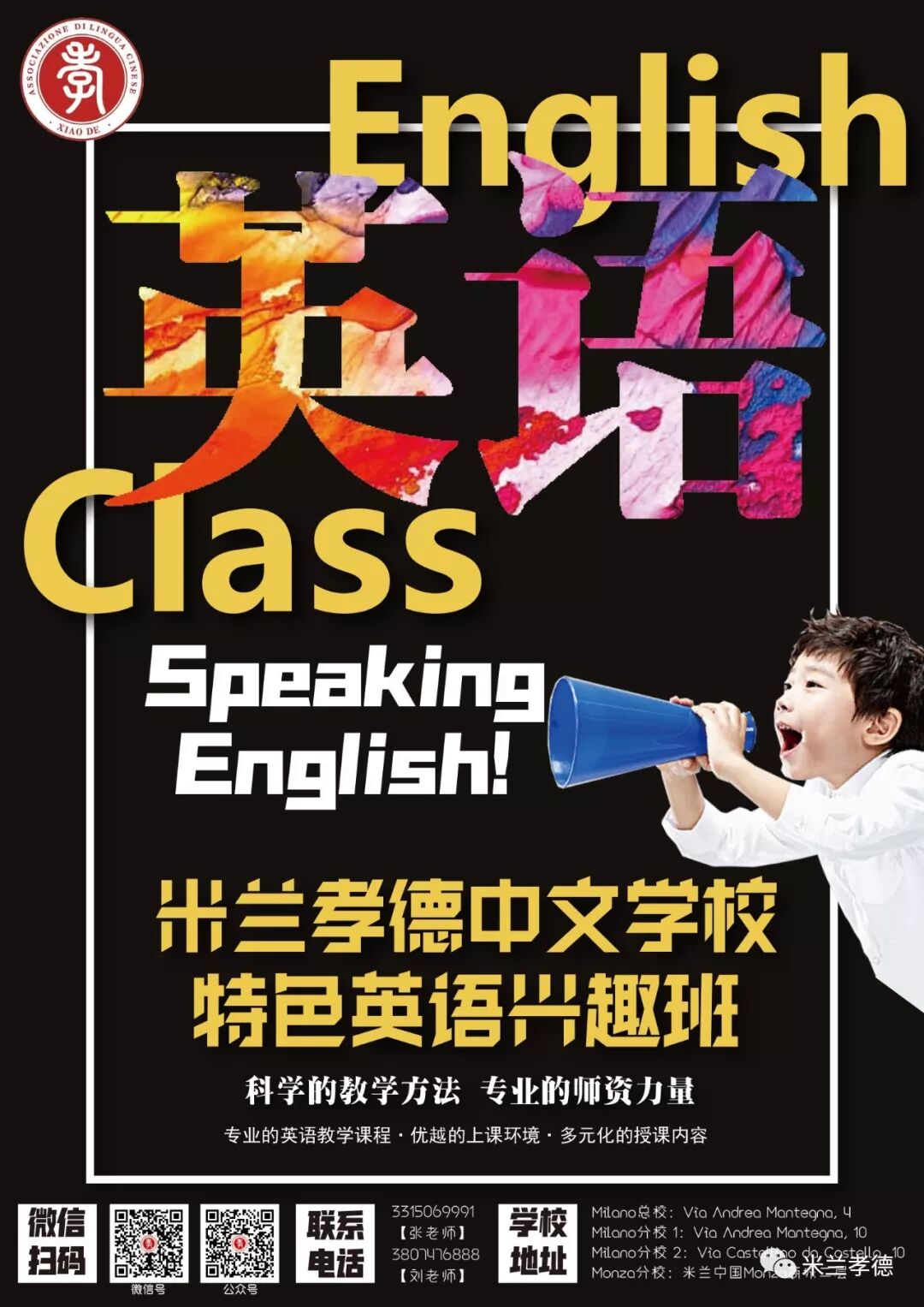 ①米兰孝德中文学校新Maciachini分校将于2020年1月28日正式开学!