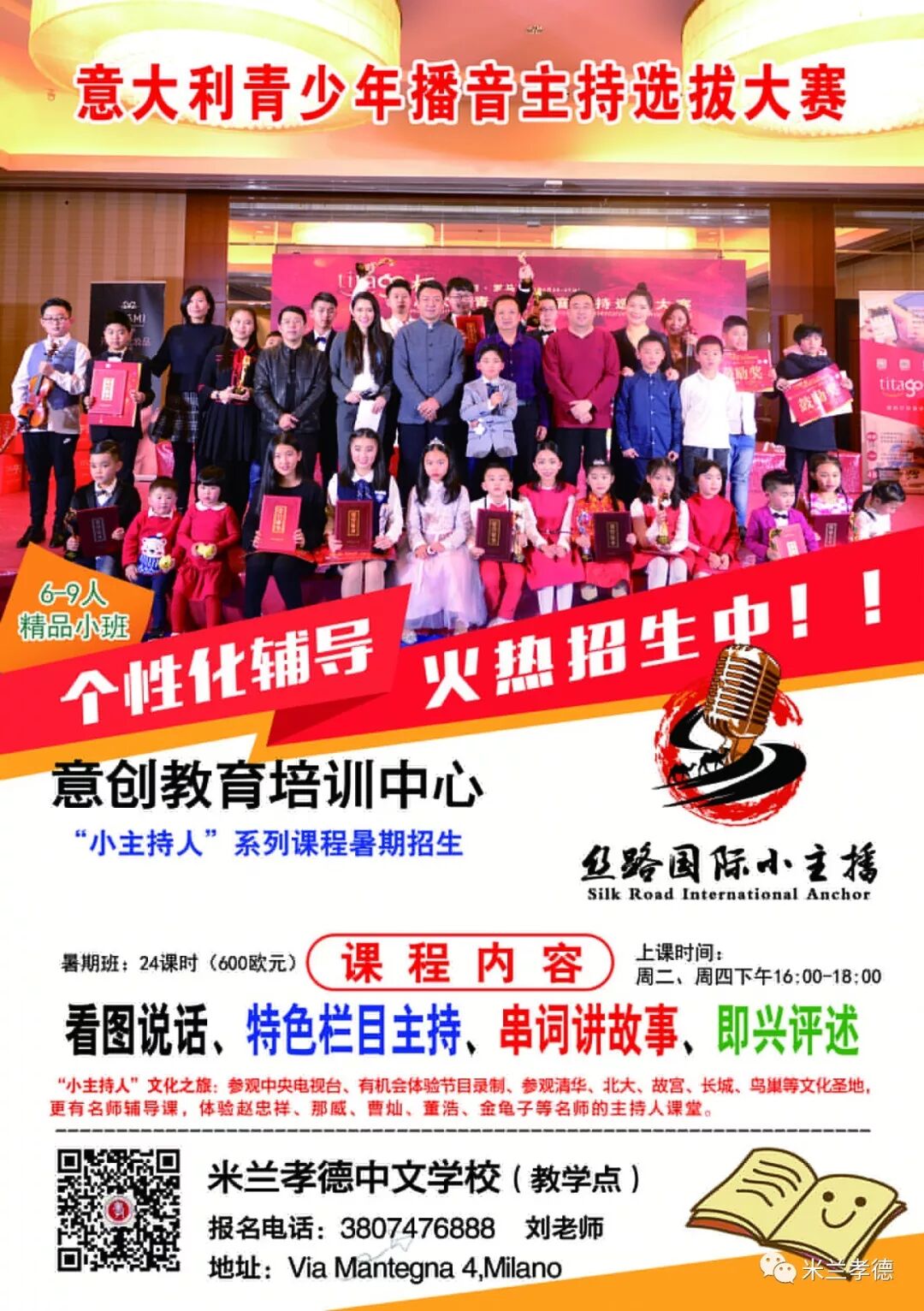 ▲7月1日我校同学参加在米兰举办的青少年主持选拔活动