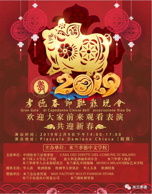 ②米兰孝德中文学校2020年春节联欢晚会暨米兰孝德中文学校五周年庆典将于2020年2月举行!